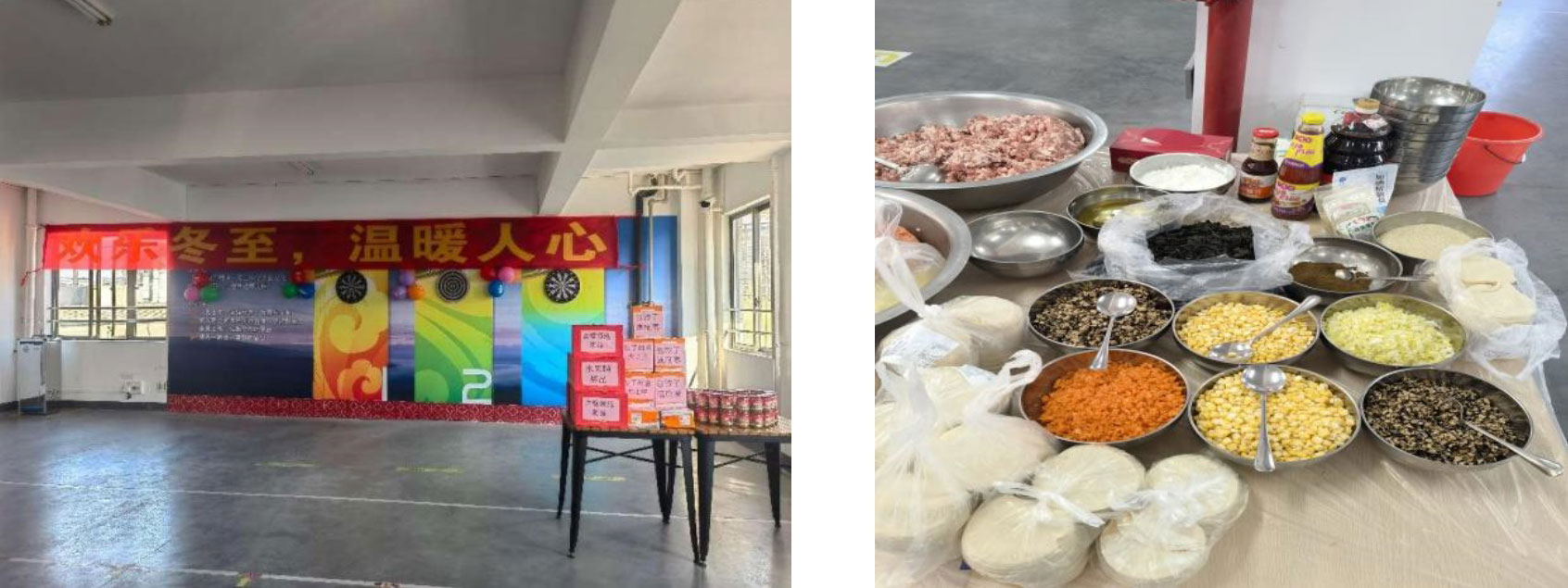 13:30,在各部門的鼎力配合下,員工文體中心活動(dòng)現(xiàn)場(chǎng)布置完畢,行政部為冬至活動(dòng)準(zhǔn)備了豐富的食材,包括:新鮮餃子皮、精選肉餡和各式蔬菜,還有公司的調(diào)味品等等,讓每位參與活動(dòng)的員工都能親手做出自己喜歡的味道。
