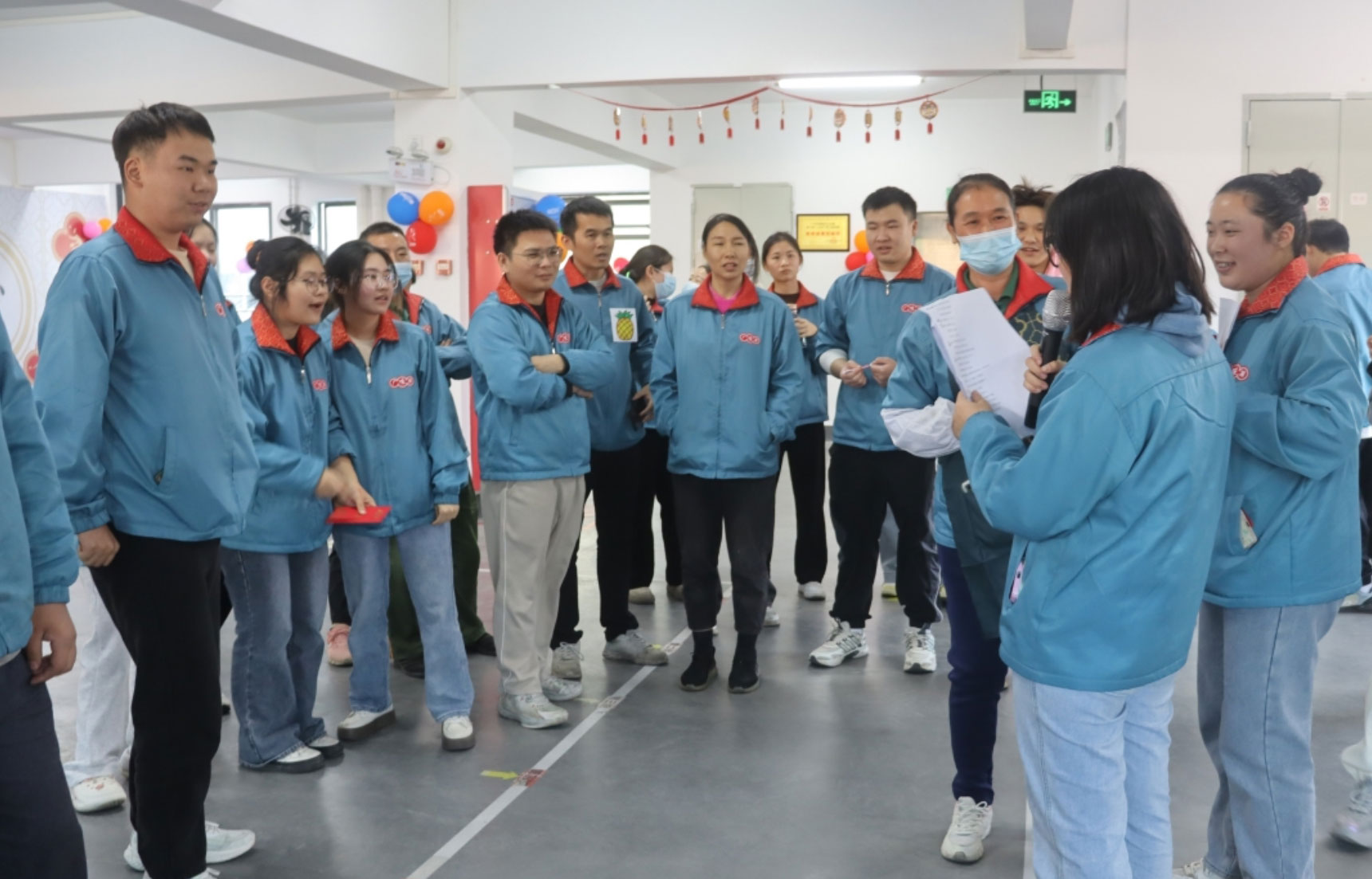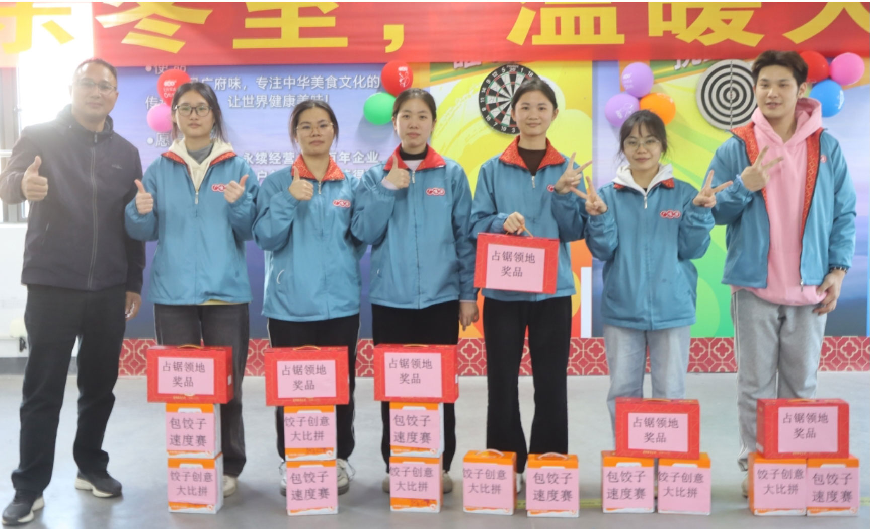 14:25,所有參與活動(dòng)的參賽隊(duì)伍、領(lǐng)導(dǎo)和觀眾到達(dá)現(xiàn)場(chǎng),14:30主持人宣布冬至活動(dòng)開始。行政部施華經(jīng)理作開場(chǎng)致辭,并祝大家冬至快樂。接著,主持人介紹了本次活動(dòng)的具體流程,一共有6項(xiàng)活動(dòng):團(tuán)隊(duì)賽(包餃子速度比賽,餃子創(chuàng)意大比拼,占鋸領(lǐng)地、水果蹲),個(gè)人賽(歇后語猜猜猜、踩氣球游戲)等。