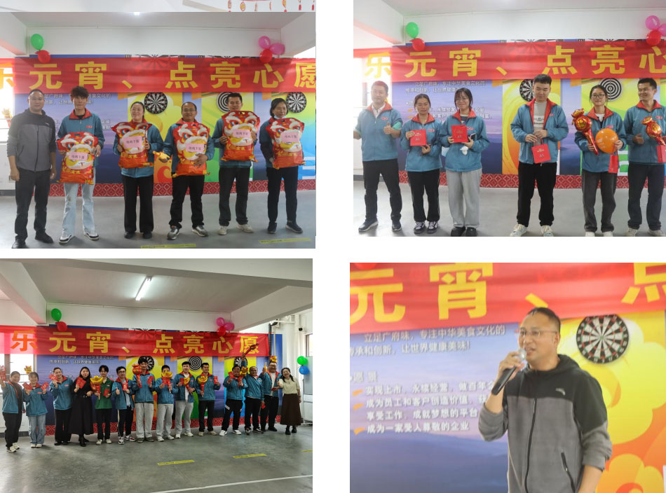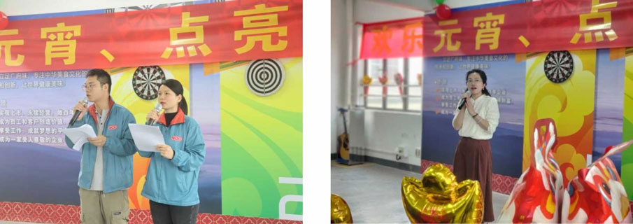15:00,活動(dòng)在溫馨的開(kāi)場(chǎng)儀式中拉開(kāi)帷幕,主持人宣布元宵節(jié)活動(dòng)正式開(kāi)始,行政部施華經(jīng)理作開(kāi)場(chǎng)致詞,向全體員工送上節(jié)日祝福,瞬間點(diǎn)燃現(xiàn)場(chǎng)歡樂(lè)氛圍。施經(jīng)理在開(kāi)場(chǎng)致辭中說(shuō),今天活動(dòng)的主題是“歡樂(lè)元宵,點(diǎn)亮心愿”,元宵佳節(jié)享團(tuán)圓,一碗湯圓福氣圓,飯?zhí)梦绮桶才帕塑浥聪闾鸬臏珗A,祝愿大家生活甜甜美美;在每個(gè)喜慶的節(jié)日里,我們都會(huì)相聚共同慶祝,這是廣味源的文化,今天是元宵佳節(jié),我們?cè)谶@里以元宵的圓滿和甜蜜為寓意,點(diǎn)亮我們共同的心愿,祝愿公司的未來(lái)像滿月一樣光明,生意如萬(wàn)家燈火一樣紅火,也祝愿所有員工家庭團(tuán)團(tuán)圓圓,甜甜美美。