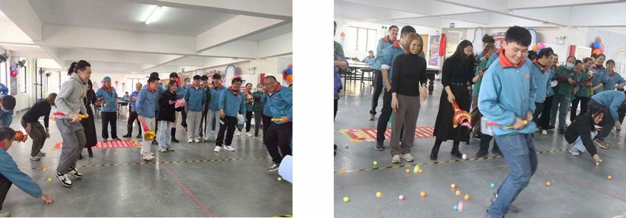 第三個(gè)游戲是《財(cái)運(yùn)滾滾樂(lè)》:這是一項(xiàng)沒(méi)有任何挑戰(zhàn)難度的小游戲,獲得眾多同事的青睞,一眨眼功夫就排了一條長(zhǎng)龍等玩游戲,大家都想試試運(yùn)氣如何,有一名同事恰巧投到“吹爆氣球一個(gè)”,小伙子馬上展示如何吹爆氣球,贏得現(xiàn)場(chǎng)同事們的陣陣掌聲和喝彩聲,這小伙子,勇氣可嘉??!